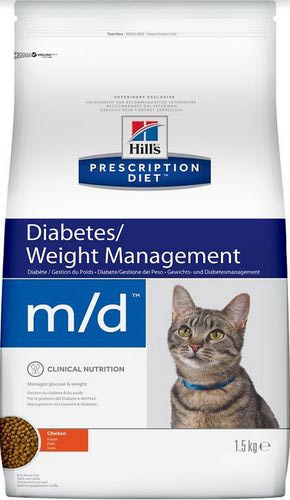 Корм сухой диетический для кошек Hill's Prescription Diet m/d Feline Weight Loss-Low Carbohydrate-Diabetic Лечение сахарного диабета, ожирения, 1,5кг